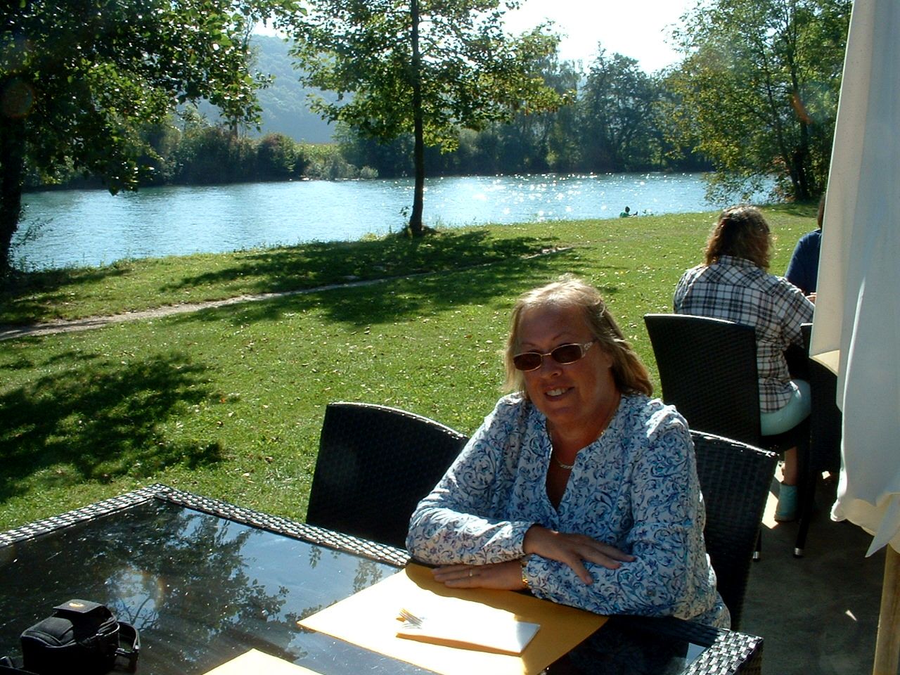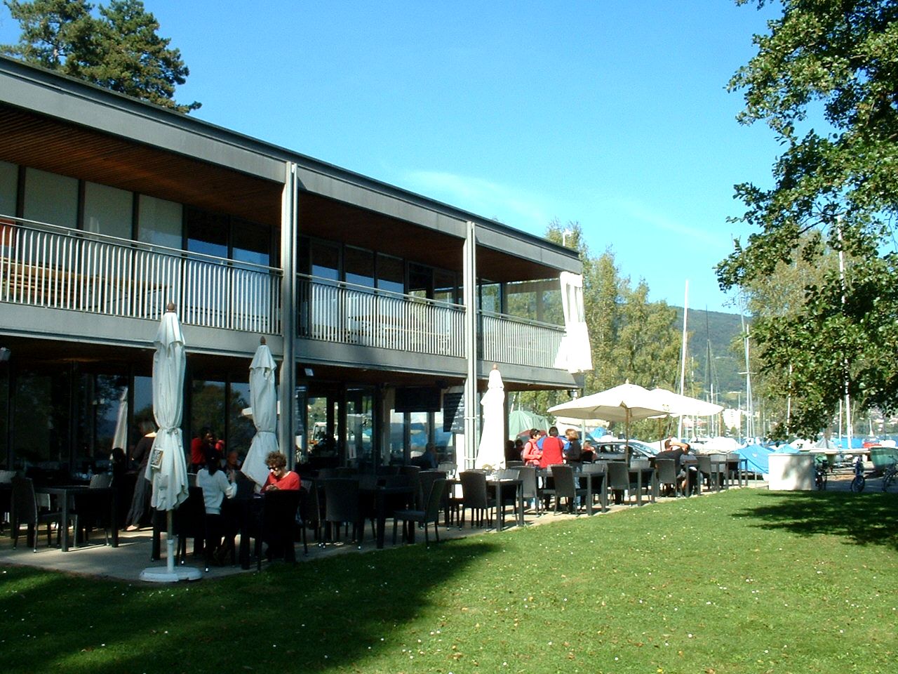 We'd really intended to find a nice quiet little restaurant for lunch but it was immediately apparent that this was not going to happen. We had a mooch round the fair but neither of us is really into this kind of thing. Being Switzerland there were many, many examples of antique timepieces, all sorts of clocks and watches which would no doubt have sent a collector into a fit of ecstasy but my more prosaic eye landed on some precision lathes. Fortunately I was dragged away before I committed myself to a purchase! Pangs of hunger were developing so we decided to make an about turn and via the campsite we headed for the port and 'La Captainerie' restaurant, essentially the local yacht club. |