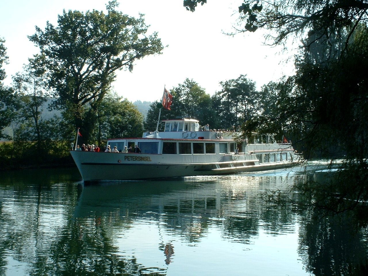 Carrying on northward we drove back into Switzerland and through (largely under) Geneva. We've realised that a substantial part of the Swiss motorway system is subterranean however during one of our 'above ground' sorties we did pass the World Trade Centre building. Incidentally the 33 euro 12 month Swiss motorway vignette is excellent value compared to the toll charges that you pay in France or Italy and you're not having to constantly feed the 'péage' machines! We took a bit of a detour from the motorway to take a peek at Lake Geneva then carried on through (actually under) Neuchâtel. All these tunnels play hell with the GPS but we found the right turnoff for Le Landeron and our target campsite "Des Peches". This is in a beautiful location near the medieval town itself and the Thielle Canal which joins Lac Neuchâtel to Lac Bienne. |