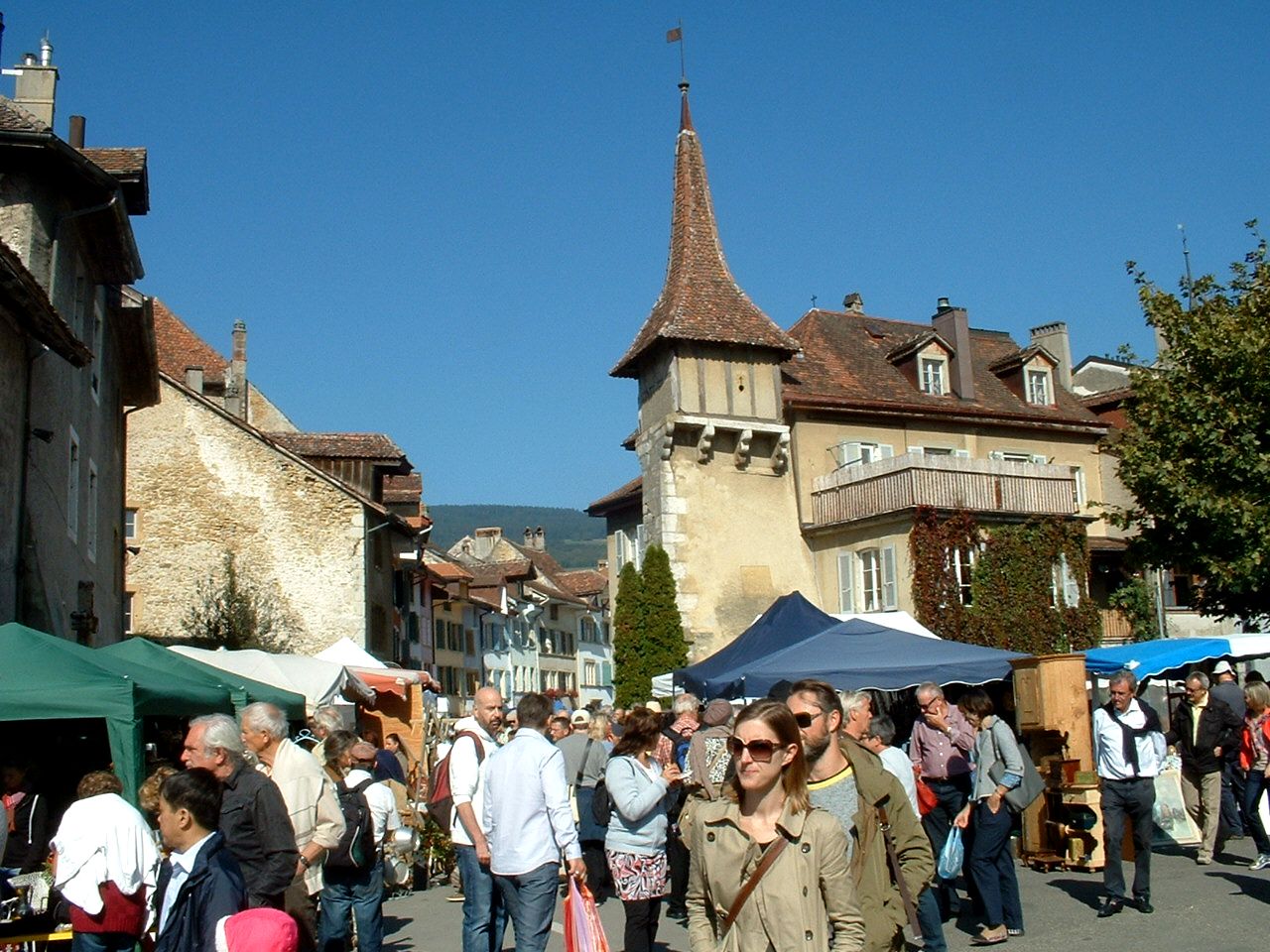 What we didn't realise when we decided on visiting Le Landeron was that the last weekend in September is the biggest date on the little town's calendar. We discovered that the entire place was taken over by a huge antiques and bric-a-brac fair which seemed to be attended by about half the population of Switzerland. As well as the hundreds (no exaggeration) of antiques trade stalls there were dozens of fast food / beer etc stands. |