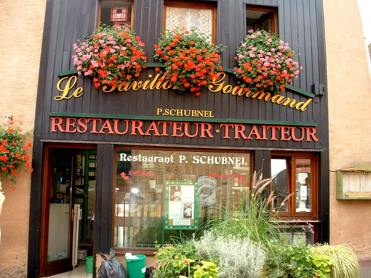 The town is a real foodies delight and after scrutinising menus at many of the restaurants we settled on a set lunch menu at a place run by the Paul Schubnel and his son David, both trained by 3 star Michelin chefs. We started with a little (complimentary) glass of pickled beetroot cubes in a creamy sauce, the entreé was terrine with pieces of fois gras in it with salad and horse radish sauce, plat was a delicious wild boar stew, cheese, a dessert of posh rum baba with a small glass of creme anglais (presented with a straw) and finally coffee. This was all accompanied by a bottle of excellent local riesling (and water this time). Presentation and service was first class and it all came in for under €100 for the two of us. As you'd imagine we didn't feel like doing too much after that lot, just a bit of pressie shopping then back to the site for a bit more sun. Our plan for tomorrow was to go over the Haute Vosge to a site near Gérardmer but the weather forecast is pretty awful and it's gone rather black in the past couple of hours. If it's low cloud and pouring rain our plans will probably change. If so this may be the last post on this blog. |