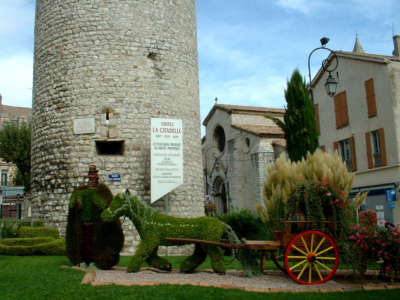our site. There's a convenient aire (motorhome parking place) on the edge of the town so we pulled in there and went for a wander. The town lies on the Durance river and views are quite spectacular but the town itself is a bit of a tourist magnet. We were a bit early for lunch and after a good look around we decided to head back to Forcalquier for lunch and to do our shopping. Here's a couple of snaps we took in Sisteron. |