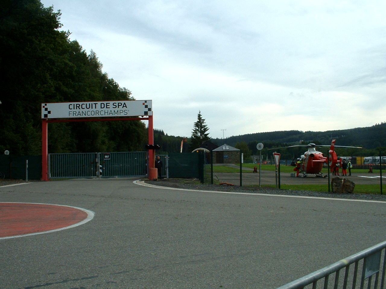 The shuttle mini-busses took us to Blanchimont, the nearest entrance to the Spa circuit. After having our tickets scanned we had to walk through a narrow, pitch black tunnel under the track (Sue didn't like that bit) and then a road runs through the heart of the circuit giving access to the various vantage points. We chose the double corner at Pouhon where the cars are breaking hard after the run downhill from Rivage and then dropping down to the s-bends at Les Fagnes. Here's a rough layout of the Spa circuit: |
