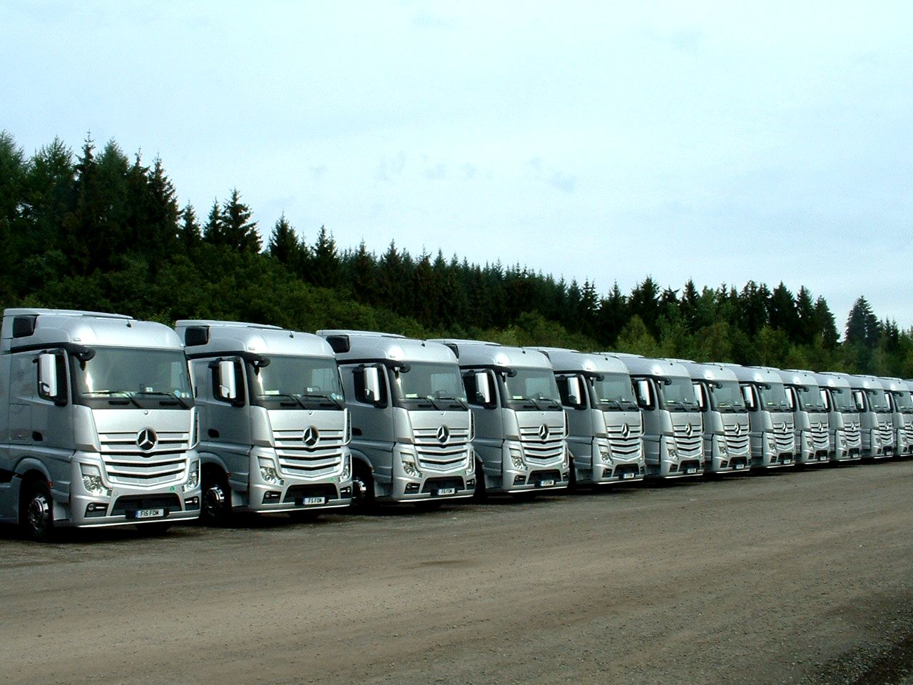 The number of trucks used to transport the teams to the GP is incredible. The photo above shows part of the Mercedes team fleet, all with sequential (UK) personalised number plates and parked in a precise row with millimetre perfect spacing. Obviously German drivers! The other big teams also had similar sized fleets. |