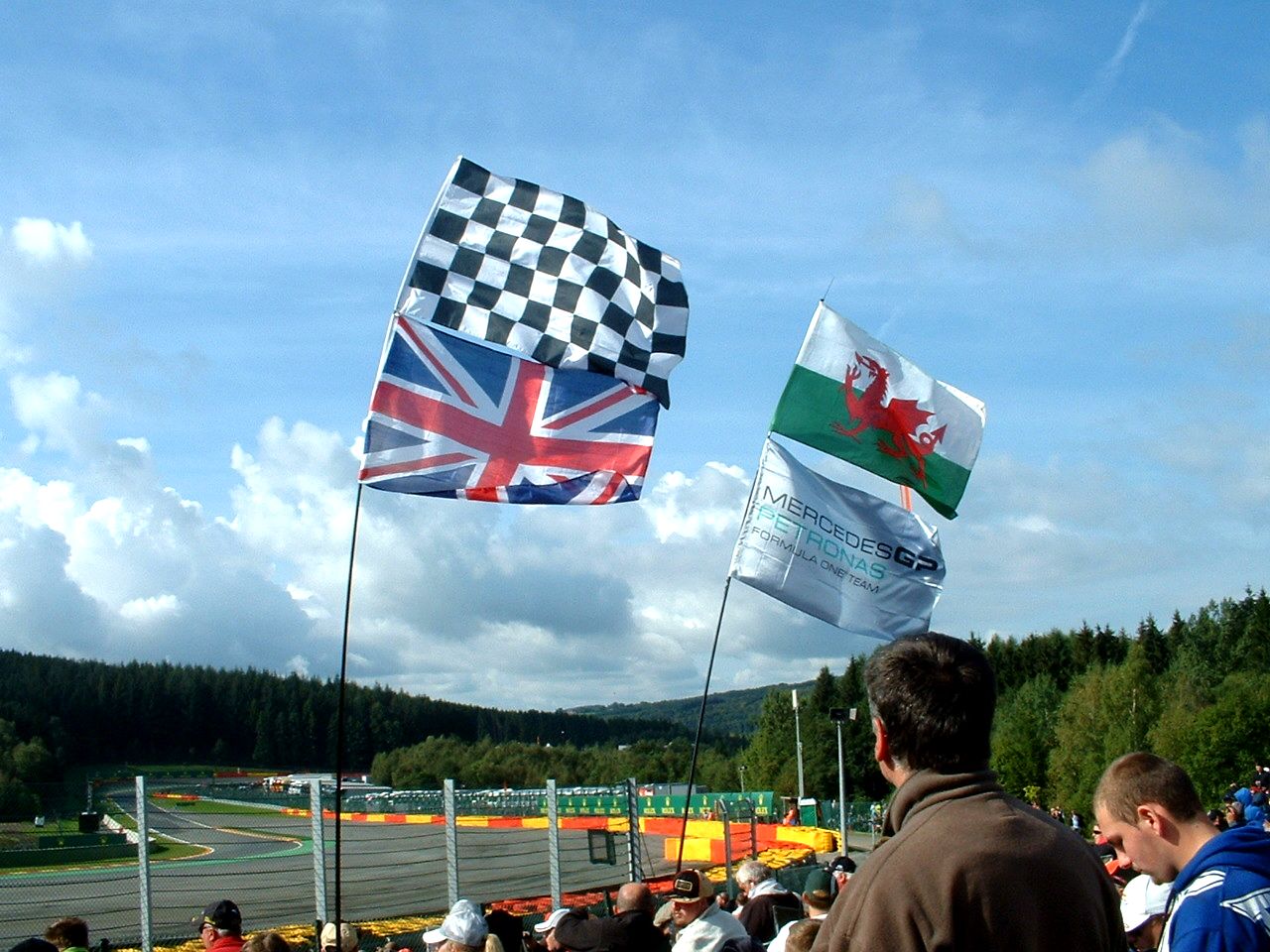 The crowd on the Sunday, race day, was enormous and despite arriving at our chosen point before 9am we were still several rows from the front and had to stand in order to get a decent view. The Brits were there in considerable numbers and at times all you could hear were English voices, it almost felt like the British GP MkII. |
